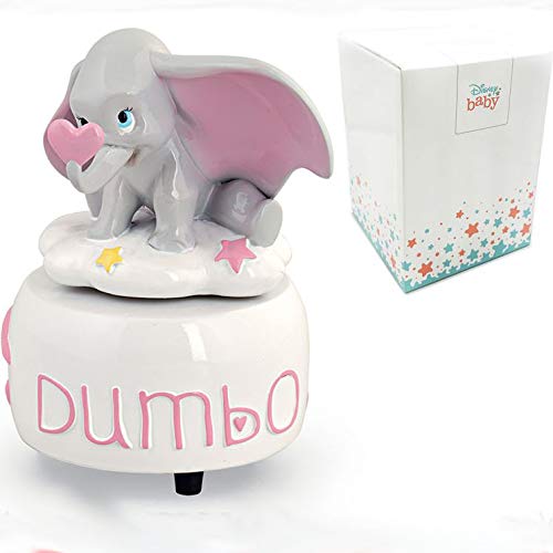 Carillon con Dumbo con orecchie rosa firmato Disney in resina lucida, bomboniere battesimo originali, idee regalo nascita bambina, completo di scatola regalo (senza confezionamento)