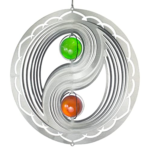 Carillon eolico in acciaio inossidabile, Orbit Yin Yang, comprensivo di snodo sferico, gancio e cavo in nylon da 1 m, con sfere di vetro
