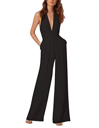 CARINACOCO Donna Elegante Tuta Pantaloni Larghi Senza Schienale Halterneck V-collo Jumpsuit Con Tasche Bodysuit Cocktail