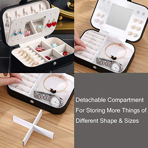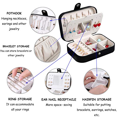 Carinacoco Portagioie da donna, piccolo portagioie da viaggio, con specchio per anelli, orecchini, collana (nero)