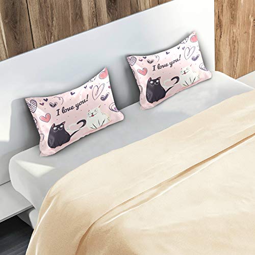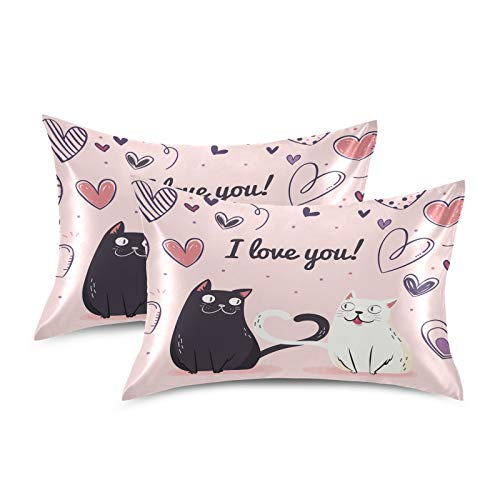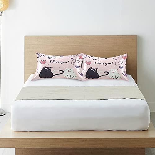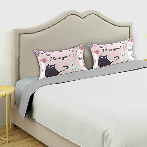 Carino Amore Cuore Gatto Gattino Federe Cuscino Letto, Federa Guanciale Pillowcase in Seta Morbida per Capelli e Pelle con Chiusura a Busta standard/regina/re