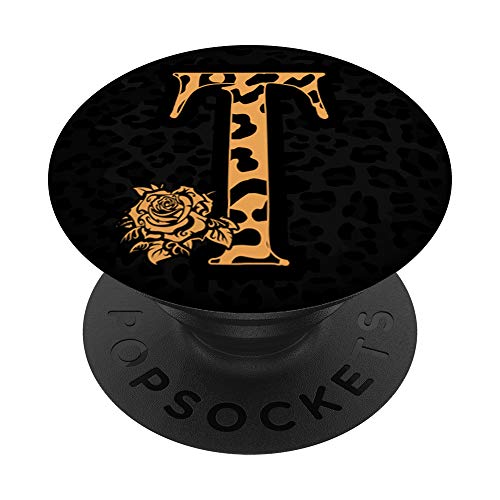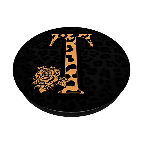 Carino Cheetah Stampa Lettera T Leopardo Cheetah Nero PopSockets PopGrip Intercambiabile