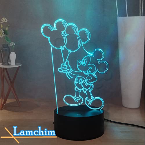 Carino Mickey Mouse palloncini 3D luce notturna visiva, luce notturna LED camera da letto a distanza tocco 7 colori decorazione luce, regalo di Natale per bambini adolescenti