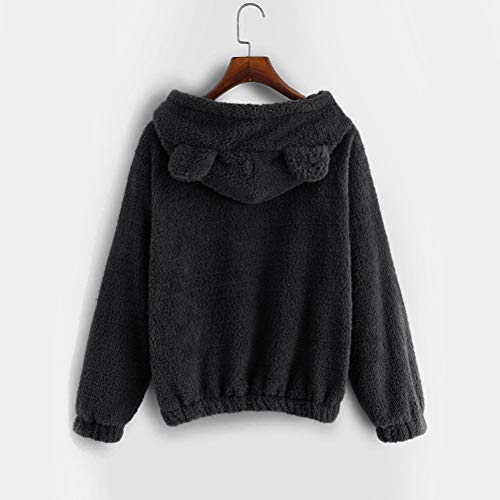 Carino Orso Orecchio Donne Felpe Con Cappuccio Manica Lunga Soffice Pile Casual Felpa Pullover Outwear Cappotto, Nero, XL