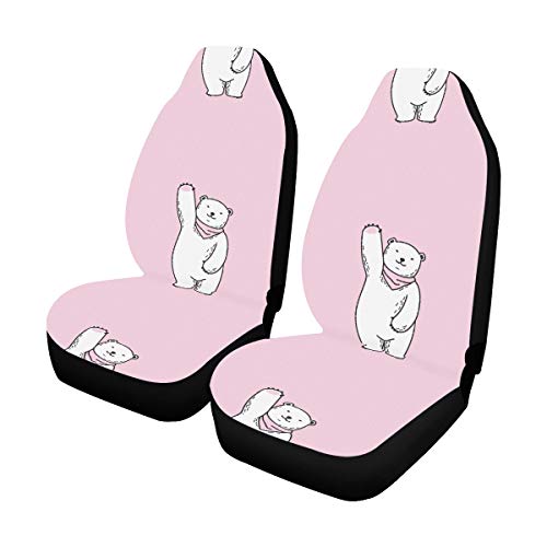 Carino Big Polar Bear Disegnato a mano Custom New Universal Fit Auto Car Seat Covers Protector per le donne Automobile Jeep Truck Suv Veicolo Set completo Accessori per adulti Baby set di 2 Front