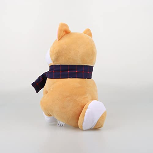 Carino Shiba Inu Peluche Bambola, Akita Inu Sciarpa Cane Peluche Bambola Cuscini Morbidi, Ragazze Regalo di Compleanno 25 Cm Marrone