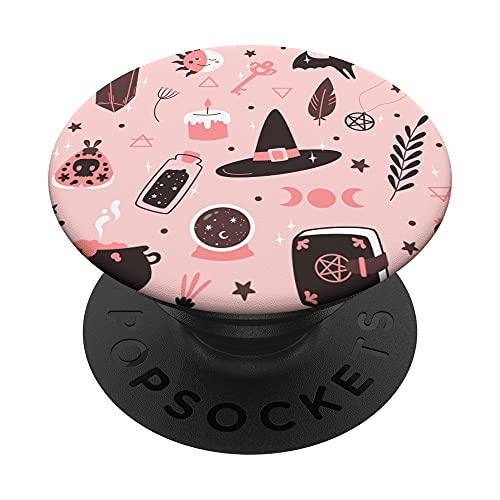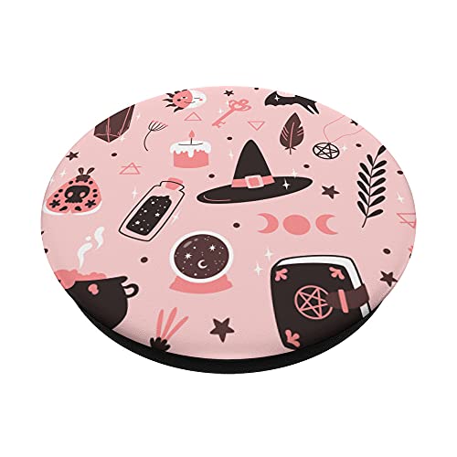 Carino Strega Rosa Pastello Goth Stregoneria Wicca Halloween PopSockets PopGrip Intercambiabile
