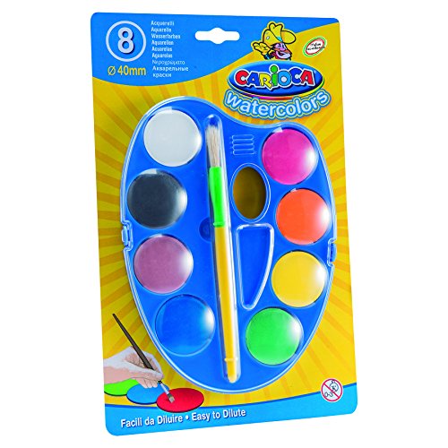 Carioca 42493 - Confezione Acquerelli, Tavolozza 8 Colori, con 1 Maxi Pennello Omaggio