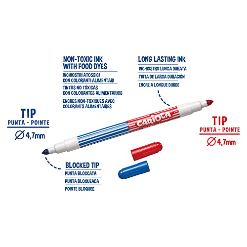 Carioca Bicolor Pennarelli, Pennarelli con 2 Colori In 1 Pennarello e Inchiostro Superlavabile e Atossico, 12 Pezzi