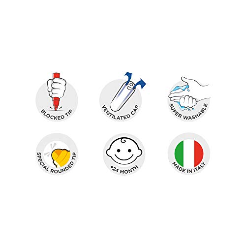 Prodotto: Scatola di pennarelli punta arrontondata con inchiostro superlavabile, 12 pennarelli con colori assortiti brillanti e vivaci