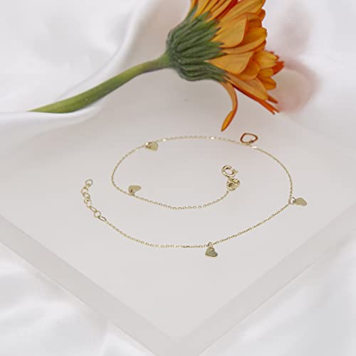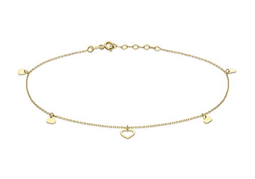 Carissima Gold da donna in oro giallo da 9 ct 4,8 mm x 4 mm, cavigliera regolabile con cuore aperto e chiuso 23 cm / 9 "-25,5 cm / 10"