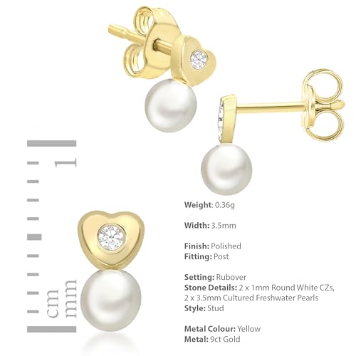 Carissima Gold - Orecchini con Perla da Donna in Oro Giallo 9K, a Forma di Cuore