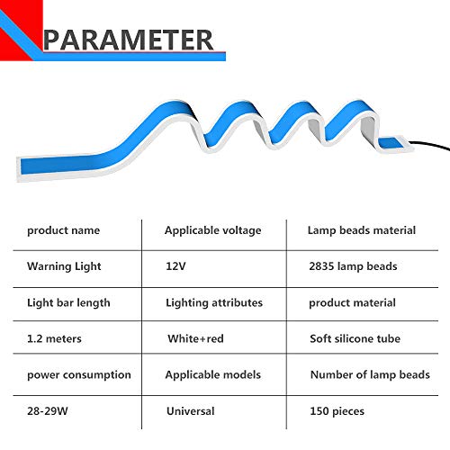 PARAMETRI: 2 barre luminose di avvertimento da 1,2 m, uno strumento di installazione. Ci sono 150 perle di lampada su ciascuna barra luminosa con luminosità estremamente elevata.