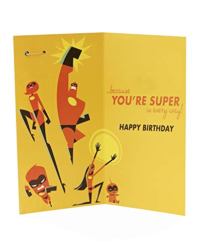 Carlton 605070 - 0-1 Disney The Incredibles età 7 biglietto di auguri con distintivo