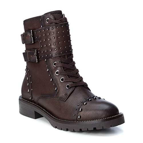 Carmela Stivaletti Anfibi Donna Pelle Marrone Testa di Moro con Borchie Applicate. Fibbie e Chiusura con Stringhe e Zip Laterale. Fondo in Gomma Antiscivolo.