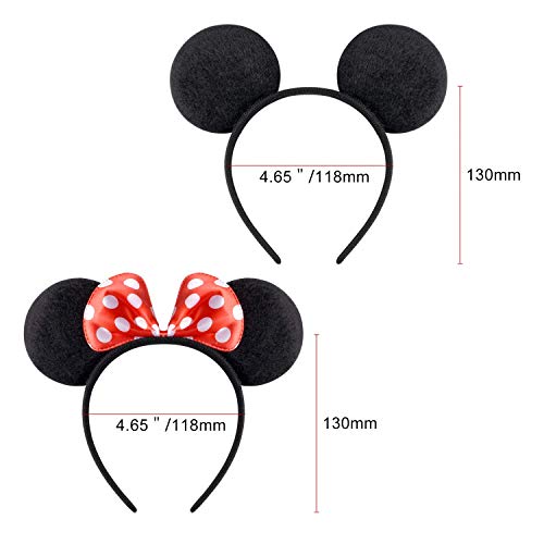 Carnavalife Confezione 12 cerchietti con orecchie di Minnie e Topolino con puntini bianchi, feste in maschera per cosplay, accessori fai-da-te per compleanno