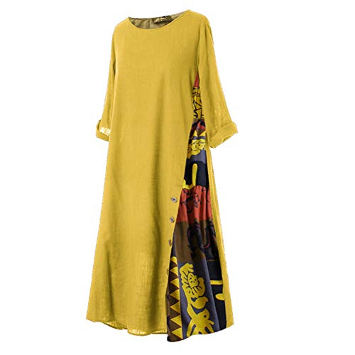 Carolilly Maxi abito lungo da donna di grandi dimensioni larghe stile boho maniche 3/4, Giallo-b, M