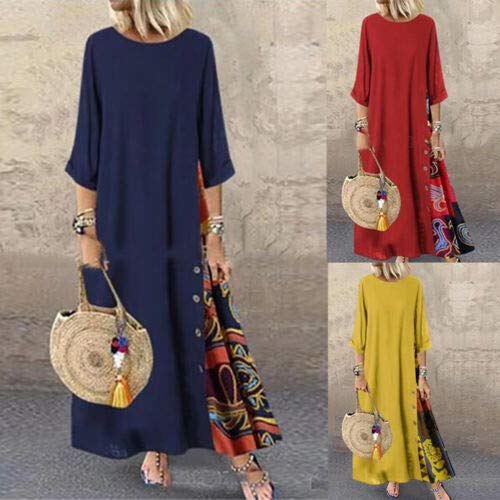 Carolilly Maxi Abito da Donna a Maniche Lunghe Floreale Boho Gonna Vintage di Estate Comodo Allentato Caftano Casual (Blu Scuro, M)