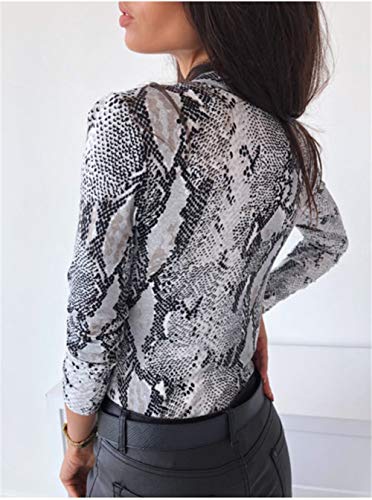 Carolilly Tuta Leopardata da Donna Tuta con Scollo a V Leopardato in Pelle di Serpente Tuta Aderente Tuta Intera Manica Lunga