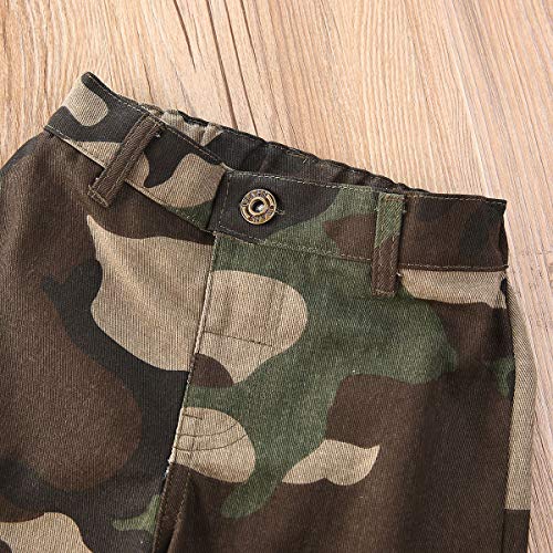 Caratteristiche: design a balze a strati sulla spalla, top a manica lunga con spalle scoperte e pantaloni lunghi mimetici rendono il tuo piccolo vivace e adorabile.