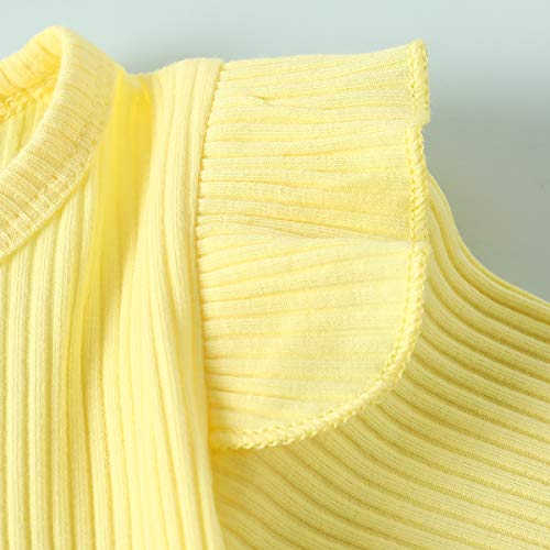 Carolilly - Set da 2 pezzi in cotone a costine con balze, maniche lunghe e pantaloni giallo 2-3 Anni
