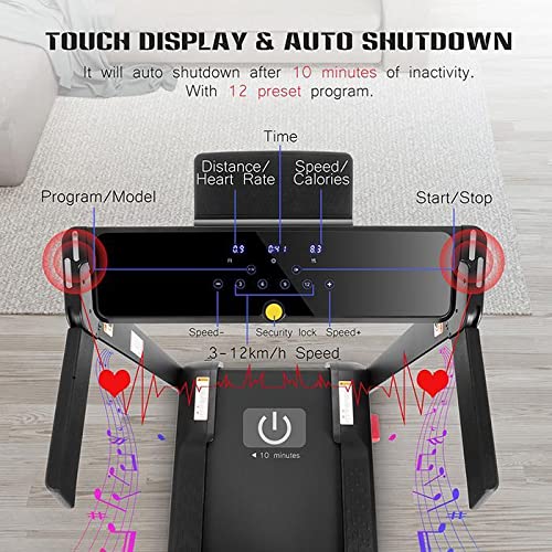 Caroma Tapis Roulant Elettrico Pieghevole Salvaspazio 750 W, Tapis roulant per Casa con MP3 Bluetooth APP, 14 km/h, 12 Programmi e Cardiofrequenzimetro, Peso Massimo 110 kg, Senza Installazione (Nero)