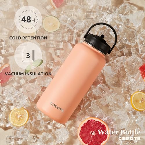 CAROTE Bottiglie d'acqua isolate, bottiglia d'acqua con coperchio e cannuccia, bottiglia d'acqua a bocca larga con tappo flessibile, 907,2 g, pompelmo