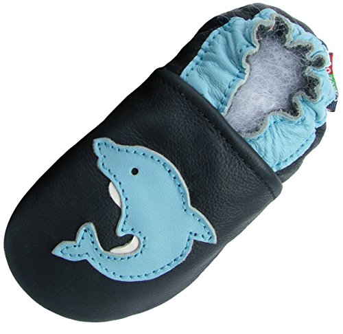 Carozoo Delfino Blu (Dolphin Dark Blue) Scarpe Sole Morbida Pelle Bambino Ragazzi