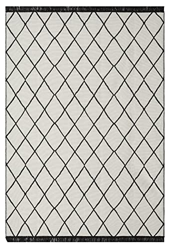 The carpet Kilim - Moderno tappeto piatto con frange, Kilim, super piatto, dal tocco vivace, facile da pulire, motivo a rombi nero, 120 x 170 cm