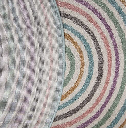 The carpet Monde Kids - Tappeto moderno per bambini, morbido, facile da pulire, colori vivaci, rotondo, colori pastello colorati, 120 x 120 cm