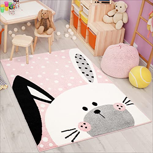 Dettagli: tappeto per bambini con coniglietti a orecchie aperte, design adatto ai bambini in rosa, resistente e facile da pulire, le dimensioni possono variare di +/-2 cm, produzione su due lati (speculare)