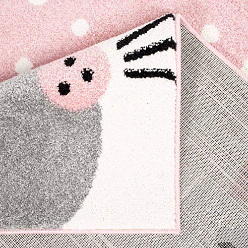 Carpet city Tappeto per bambini Bubble Kids a pelo piatto, motivo a pois, bianco e rosa, dimensioni: 120 x 160 cm