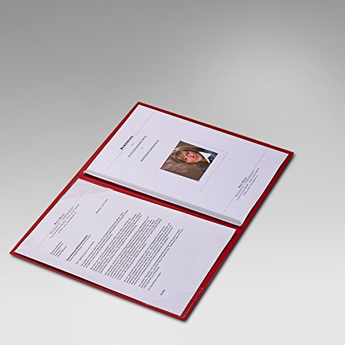 Carpeta - Set di 8 portadocumenti per curriculum vitae, a 2 alette con scritta in rilievo in tedesco "Bewerbung" (domanda di lavoro), realizzati a mano, colore rosso rubino