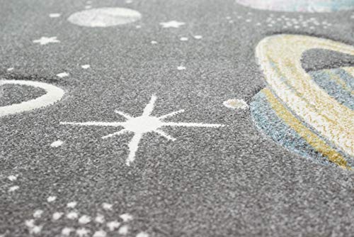 CARPETIA Tappeto per bambini spazio esterno stelle e pianeti grigio pastello Größe 120x170 cm