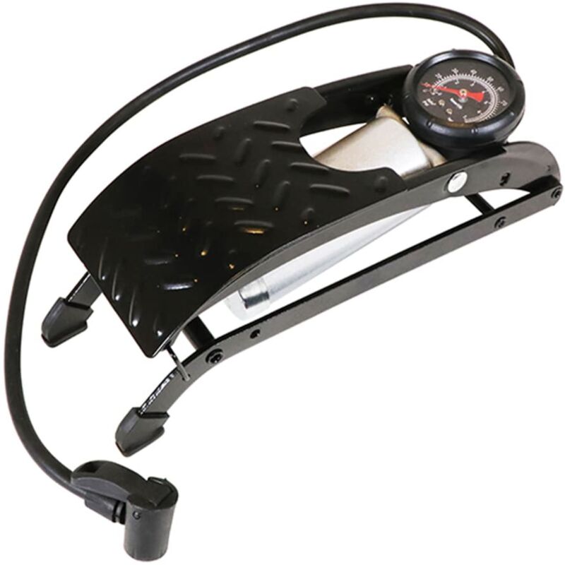 Questa pompa a pedale a canna singola della Carpoint è perfettamente adatta per applicazioni che richiedono un volume d'aria elevato o un gonfiaggio rapido. La pompa è caratterizzata da una struttura in acciaio robusta e solida con un singolo cilindro. Ha un manometro integrato con doppia tacca di pressione da 0 a 100 psi e da 0 a 7 bar. Il pedale presenta un design antiscivolo per evitare scivolamenti durante il pompaggio. Colore: Nero Materiale: Acciaio Dimensioni: 30 x 10 x 10 cm (L x P x A) Canna singola: 12 cm Tubo con chiusura a pollice Con manometro e adattatori Manometro 270° Il quadrante di pressione segna 0-100 psi e 0-7 bar Pedale antiscivolo Adatto per pneumatici per auto, giocattoli gonfiabili, pneumatici per biciclette e palloni SKU: 439335