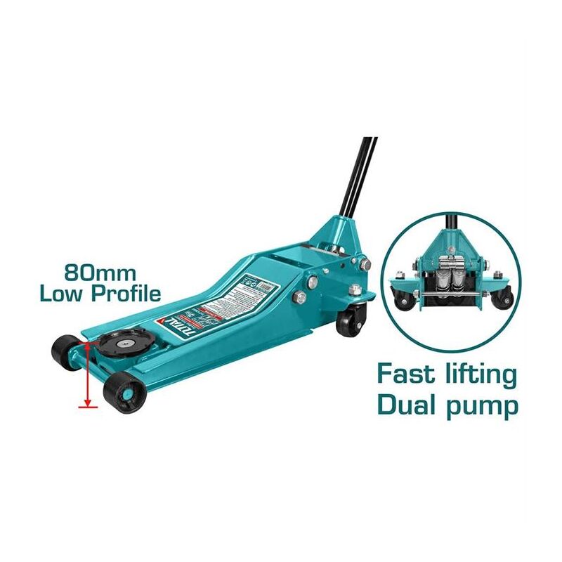 Portata: 3 Tonnellate Sollevamento veloce, doppia pompa idraulica Altezza minima: 85mm Altezza massima: 515mm Escursione: 430mm