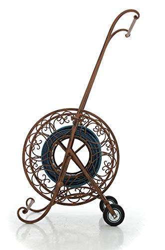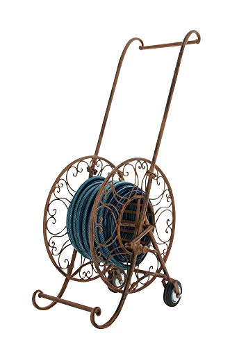 CLP Carrello Avvolgitubo Balko in Ferro - Avvolgitubo Irrigazione Giardino 50M Stile Rustico - Carrello Avvolgitubo con Appoggio Marrone
