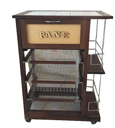 Carrello da Cucina con Ruote portapane portafrutta portabottiglie in Ferro (Noce)