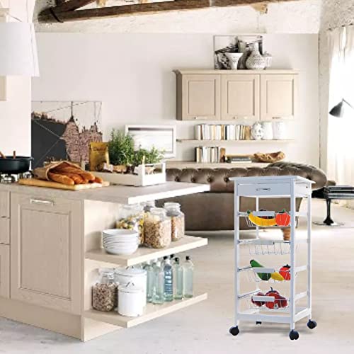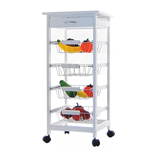 Carrello Cucina Struttura in Legno Portaverdure Portafrutta quattro cestelli in Acciaio Carrello Cucina Slim con Cassetto Top in Ceramica Pratiko Life