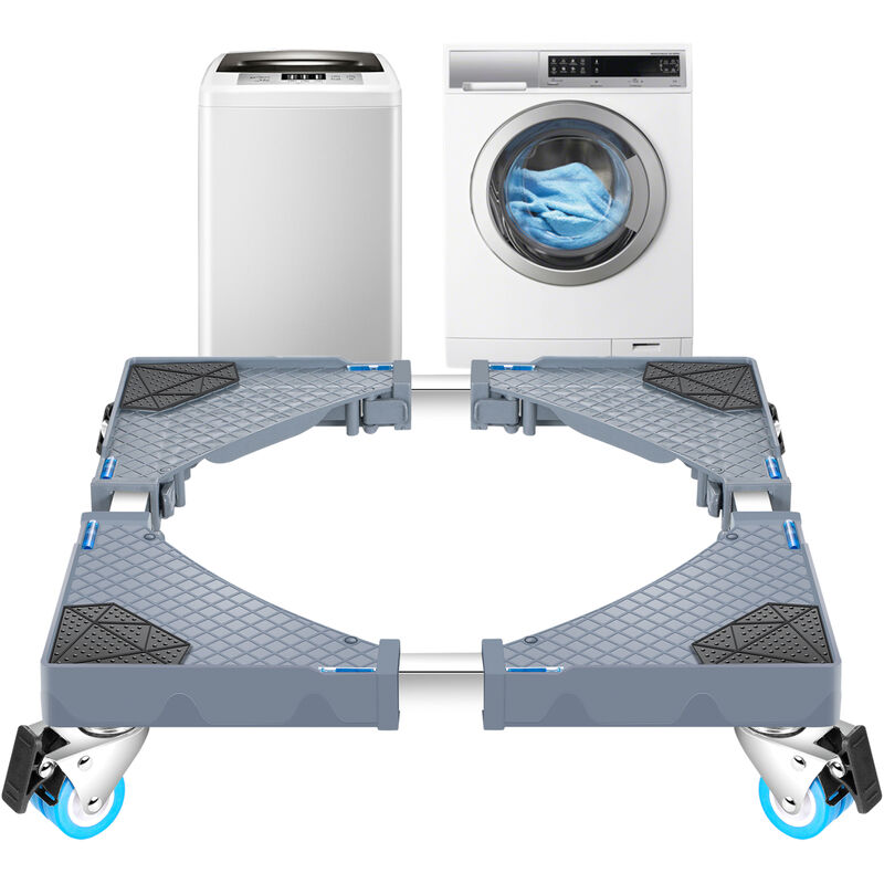 Carrello per elettrodomestici La base con rotelle é adatta per supportare le apparecchiature domestiche rendendole piú facile anche il loro spostamento. I cuscinetti di gomma asicurano la stabilitá e assorbiscono le vibrazioni del frigorifero e la centrifuga della lavatrice. Descrizione: - è indicata per tutti gli elettrodomestici pesanti come lavatrice e asciugatrice, frigoriferi - dotato di 4 rotelle con bloccaggio - la base è estensibile fino a 75 cm in lunghezza e in profondità - protegge dall'umiditá del suolo - portata massima: 300 kg Dimensioni: - Altezza: 11cm - Lunghezza: 45-75cm - Larghezza: 45-75cm Materiale: - Telaio: acciaio inossidabile - Superficie: plastica (polipropilene) - Ruote: PVC Colore: Grigio La spedizione include: - 1 x base di supporto - 4 x rotelle - 4 x cuscinetti antiscivolo - 1 x istruzioni di montaggio Prodotto di [ en. casa]