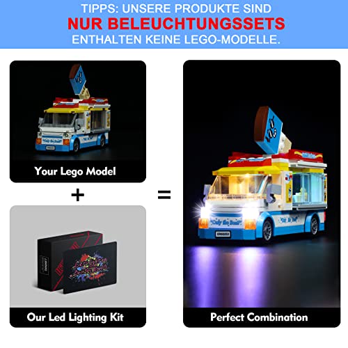 Design unico: progettato per il carrello del ghiaccio Lego 60253 City Great Vehicles, puoi portare il tuo modello di mattoncini Lego con il kit di illuminazione da scuro a chiaro e dare vita alla tua vita. (Si prega di notare che solo il set di luci a LED è incluso)
