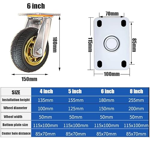 【Installazione e tipo】4/5/6/8 pollici, fisso/girevole con freno, posizionamento a 4 fori, facile da installare, è possibile acquistare in base alle proprie esigenze e dimensioni