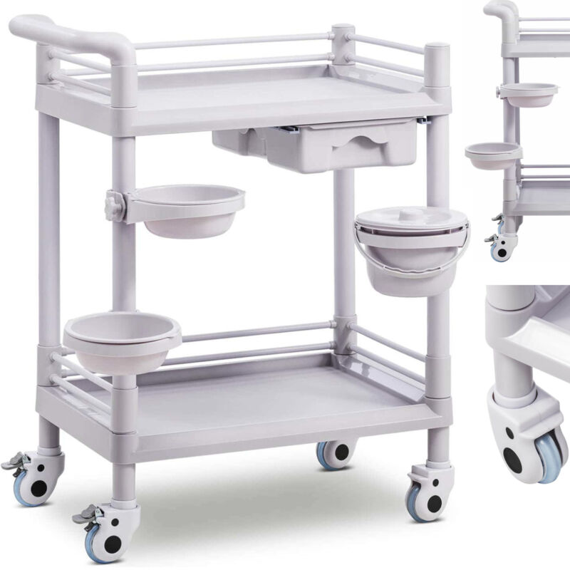 Codice produttore: 10030885 Il carrello da laboratorio Steinberg Systems consente di riporre e trasportare comodamente accessori come rack, provette, liquidi o salviette di carta. Può essere utilizzato anche come carrello da magazzino. 2 ripiani da 54 x 38 x 5 cm hanno un telaio su 3 lati per proteggerli dalla caduta. Allo stesso tempo, un lato è aperto, il che rende più facile rimuoverlo e sistemarlo. Il carrello è inoltre dotato di un cassetto di 17 x 35 x 8 cm situato appena sotto il ripiano superiore e di 3 contenitori che possono essere ruotati di 360° a seconda delle vostre esigenze, un contenitore è dotato di coperchio. 4 ruote e una pratica maniglia consentono di trasportare rapidamente e facilmente il passeggino nel luogo prescelto. Le ruote sono in plastica (ABS + PVC), non graffiano il pavimento, due freni di stazionamento garantiscono la stabilità del passeggino. I tubi e i ripiani sono in plastica. La capacità di carico del passeggino è di 20 kg. I materiali utilizzati
