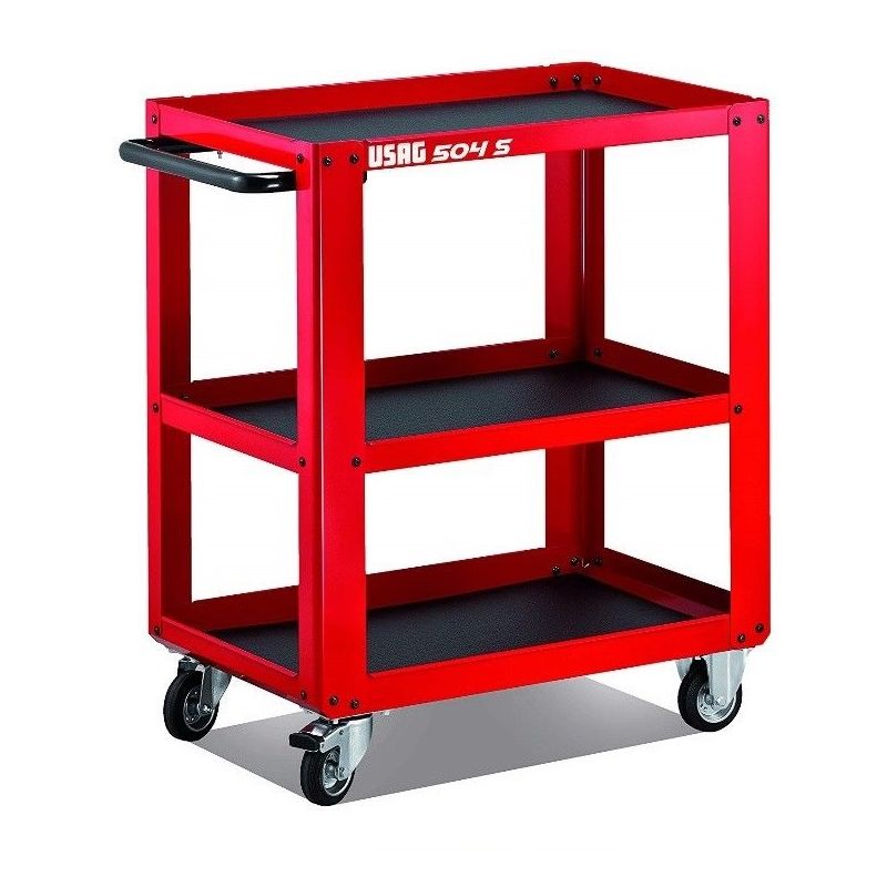 CARRELLO A 3 RIPIANI MULTIUSO - Modello a 3 ripiani con tappeti in materiale plastico ad alta resistenza - Bordi anticaduta su tutti i ripiani per evitare la caduta di oggetti durante il trasporto - Maniglia in acciaio per una maggiore manovrabilit� - Due ruote pivottanti (� 100 mm) e due ruote fisse (� 100 mm) di cui una con freno - Fornito smontato - Portata max: 200 Kg