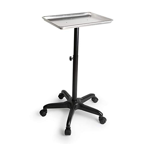 Carrello da parrucchiere, altezza regolabile, con ruote, facile da spostare, per salone di bellezza, colore: nero/argento