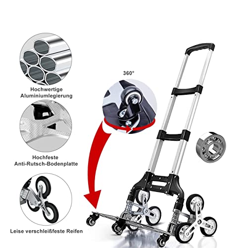 Carrello pieghevole robusto | Rinforzato con 6 ruote in gomma | Può essere utilizzato per salire le scale - con 4 ruote piroettanti