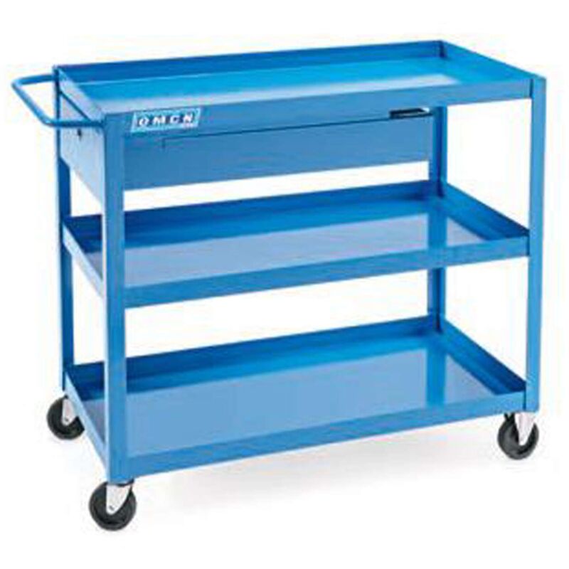 Carrello porta attrezzi pesante con cassetto da 150kg OMCN 109/CIl carrello porta attrezzi di tipo pesante 109/C è un articolo del marchio OMCN robusto ed affidabile con una portata di 150kg ed è dotato di un cassetto. Composto da 3 ripiani, 4 ruote dal Ø di 80mm. Le sue dimensioni sono di 800(l)x750(a)x420(p) mm Caratteristiche Tecniche Portata 150 kg Piani 3 Dimensioni 800x750x420mm Ø ruote 80 mm Consegna in 10-15gg