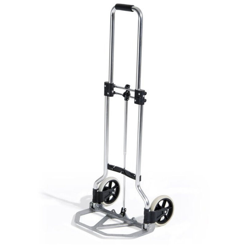Carrello Pieghevole in alluminio Verdelook Carrello portapacchi pieghevole realizzato in alluminio e dotato di due ruote robuste, molto pratico e maneggevole, perfetto per trasportare pacchi e merci senza fatica. Una volta ripiegato occupa pochissimo spazio. Caratteristiche: Portata 45 kg Dimensioni: 96 x 39 x 38 cm