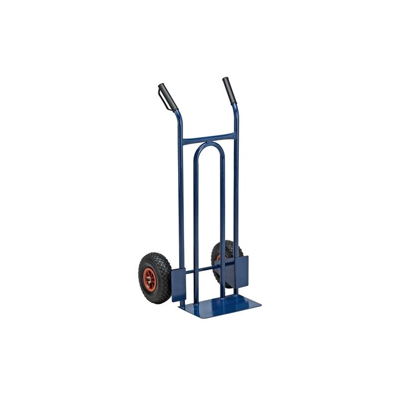Carrello per spostare pacchi ed oggetti ingombranti realizzato in acciaio verniciato color blu. Caratteristiche del prodotto: Struttura in acciaio Ruote pneumatiche Maniglie in plastica con paracolpi Portata massima 200 kg Dimensioni base 52 x profondit 48 x altezza 110 centimetri Peso 8,5 Kg circa