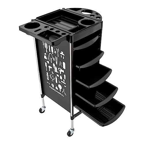 Carrello da portata con ruote, carrello da salone, carrello da parrucchiere con 5 cassetti, resistente, multifunzionale, per parrucchieri, stilisti e acconciature, colore: nero